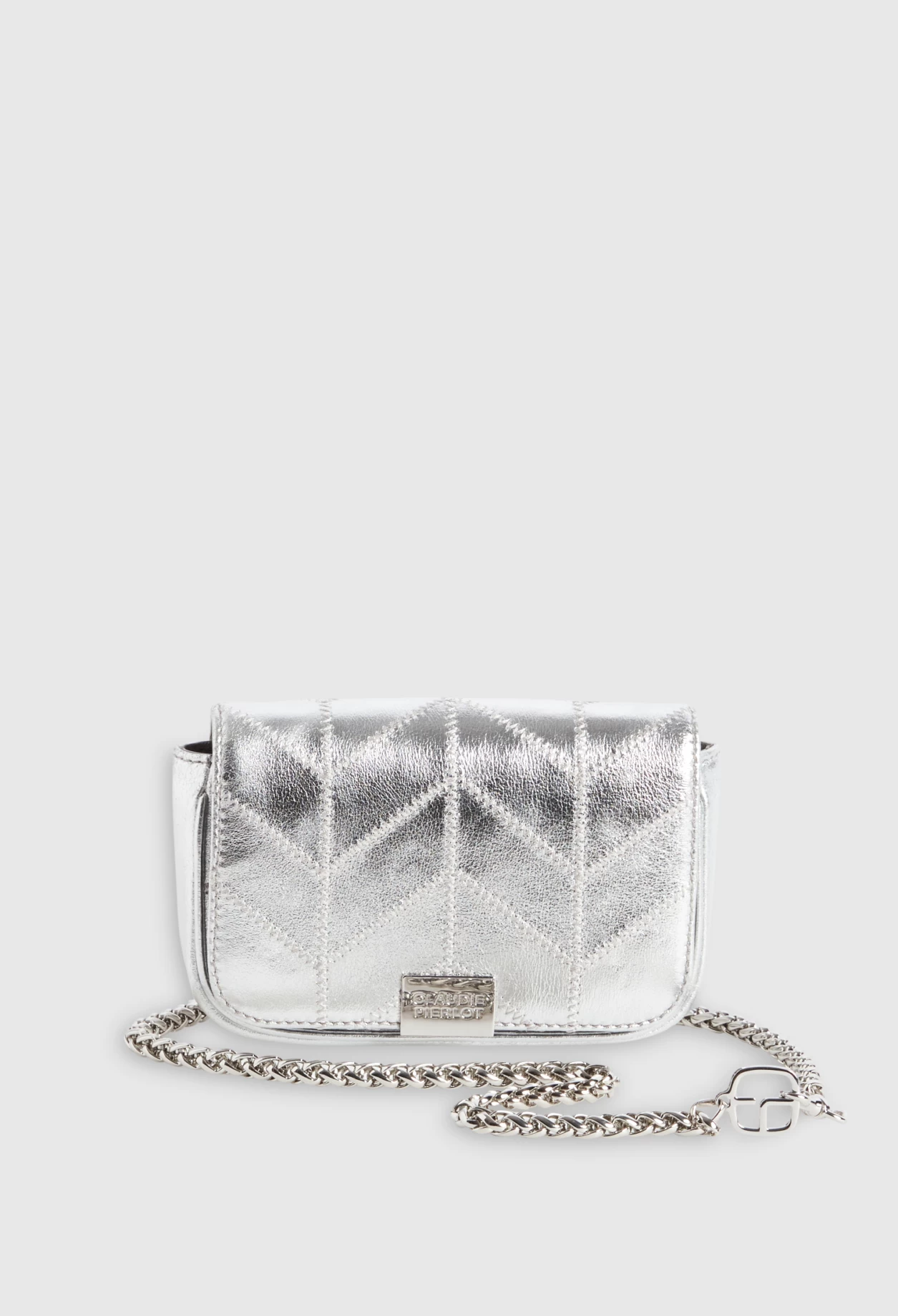 Petit sac à rabat en cuir argent