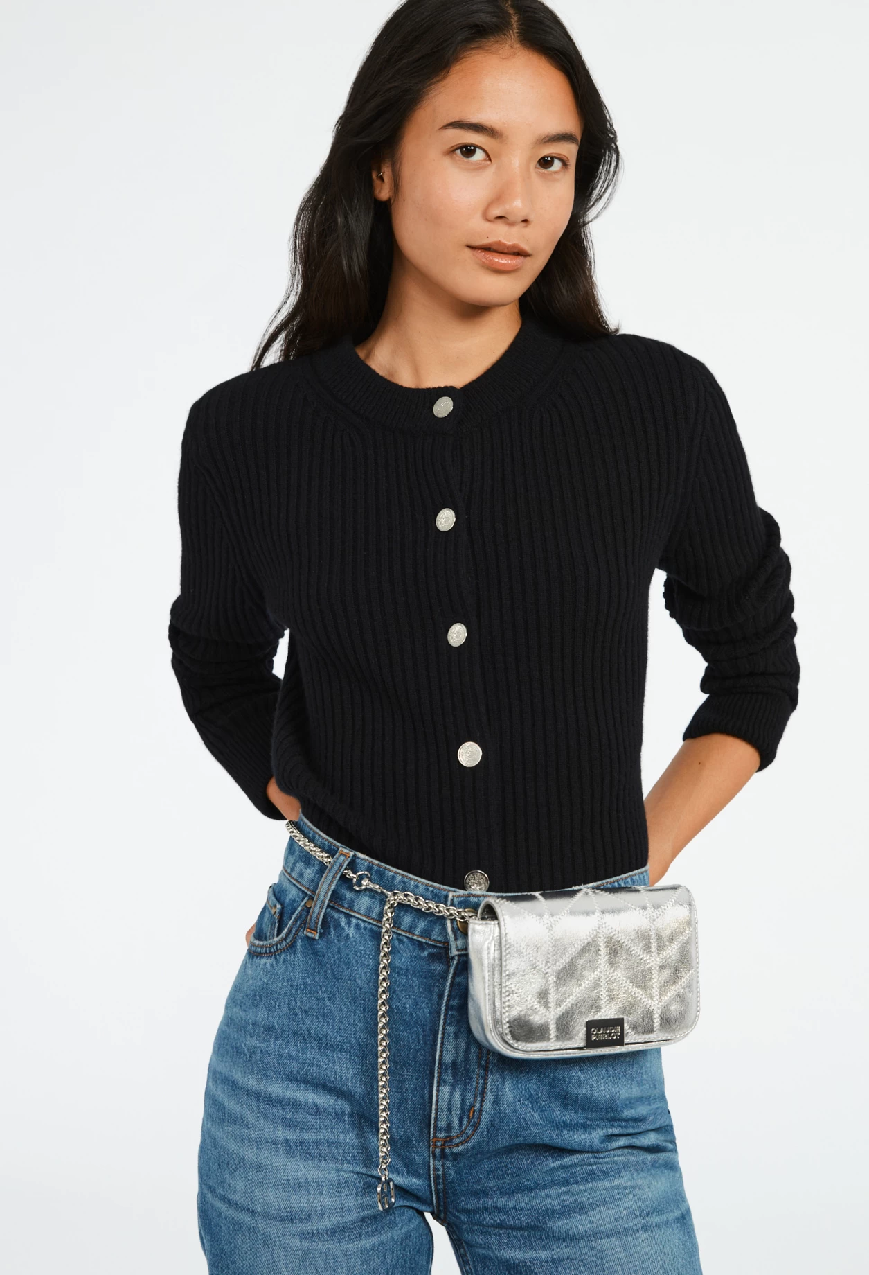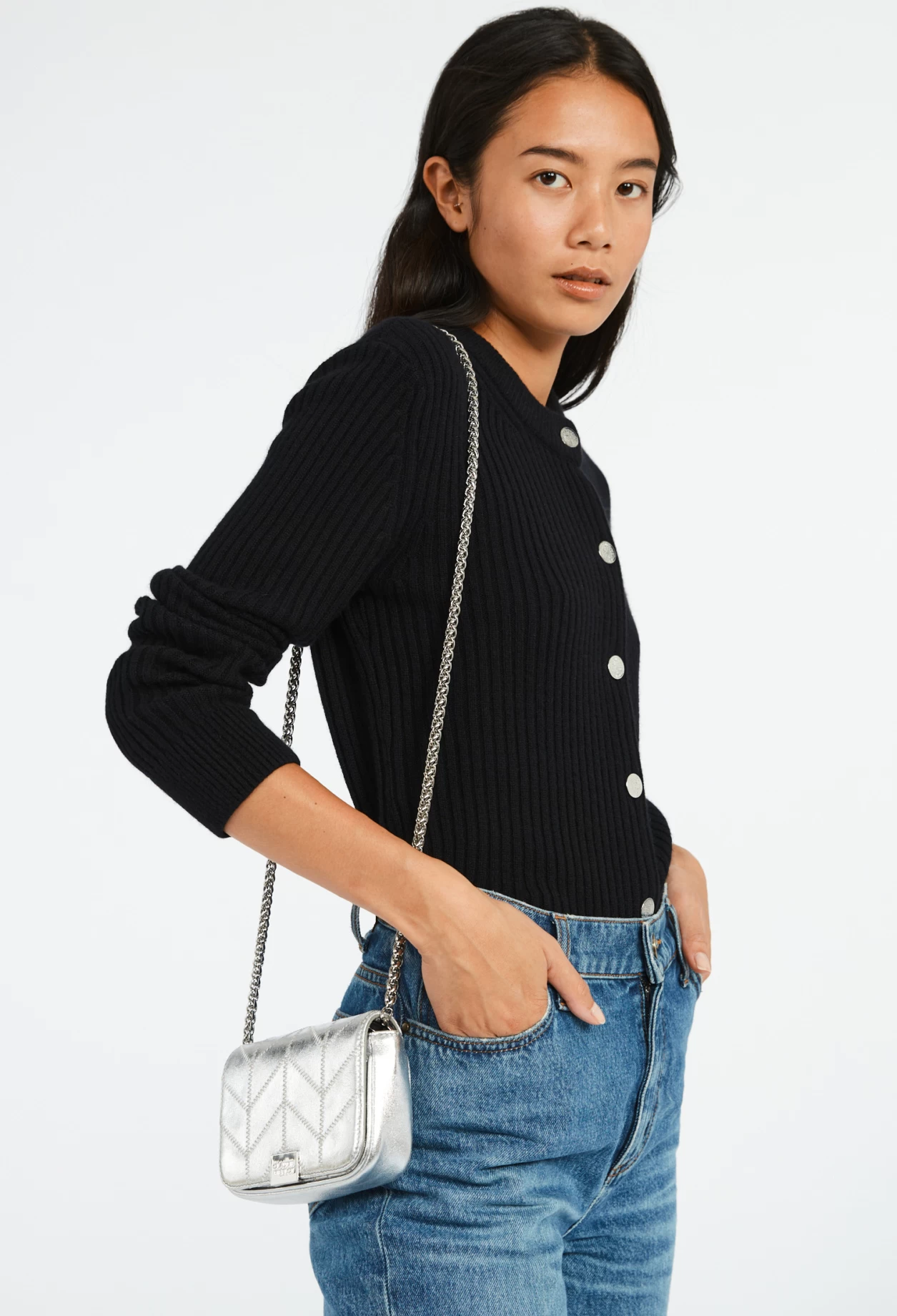 Bandoulière en chaîne argentée pour un porté épaule ou ceinture